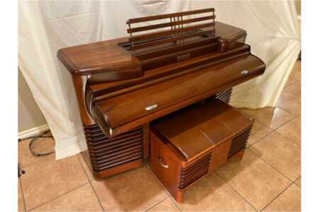 The RCA Storytone piano was built in 1939 in a joint venture between Story & Clark and RCA. This is an extremely rare and historically important instrument. The first American electric piano, it debuted at the 1939 World's Fair. It has an art deco/streamline design that rivals that of the finest furniture of the era. The case was designed by John Vassos, the famous and prolific American industrial designer of Art Deco Style. The design is striking – Art Deco expressed in one its most developed forms.