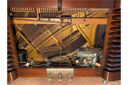 The Storytone piano (”Voiced by RCA”) incorporates a 7-tube amplifier with an output of 15.8 watts. The loudspeaker is mounted in an acoustical labyrinth which covers the entire back of the piano. High frequencies are radiated directly from the speaker baffle; low frequencies, from the labyrinth.