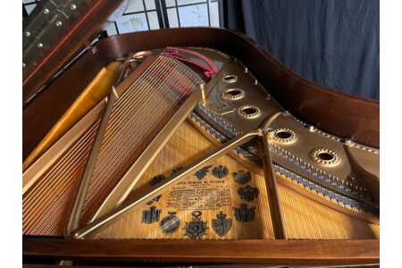 This exquisite 1936 Steinway Model B was crafted during the Golden Age of Steinway manufacturing, a period celebrated for exceptional materials, craftsmanship, and tonal quality. According to Steinway’s records, this is rare art case English style piano, sketch model 897-B. Very few pianos were ever produced in this style, making it an especially desirable collector’s piece. Not only is this an incredible work of art, but it is a remarkable and phenomenal sounding and playing instrument that was rebuilt by Paul Lindenblad, master rebuilder from the renowned Lindenblad family of New Jersey. His restoration included a reinforced and revarnished soundboard, regilded plate, new pinblock, new tuning pins, new strings, new dampers, new felts, and bridge caps. He also regulated and voiced the action to a high performance level. The action saw very little playing time as the piano served primarily as an exquiste furniture piece rather than a serious playing instrument. The piano was also completely refinished and has been meticulously maintained, preserving its beautiful Art Case presentation and musical integrity.