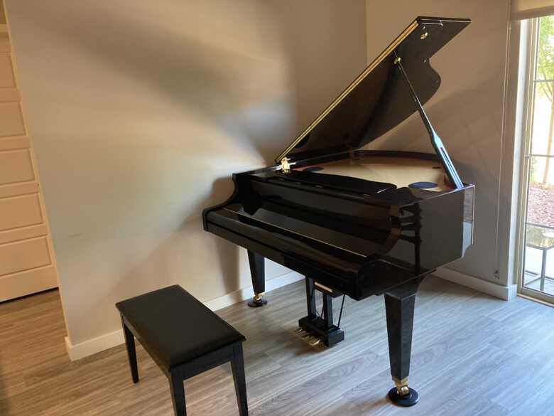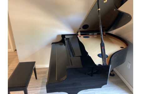 Exquisite polished ebony finish with "soft landing" keyboard cover