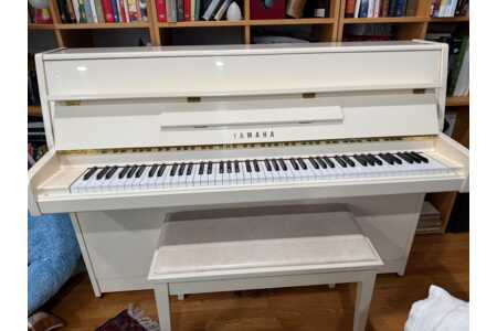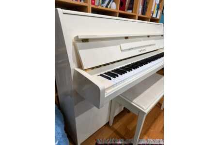 Modern White Yamaha Upright Piano (M1E) – High Gloss + Bench