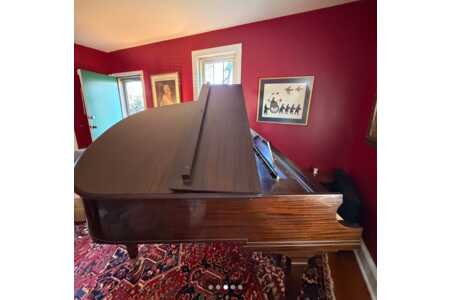 Beautiful Baldwin baby grand piano in elegant walnut finish.