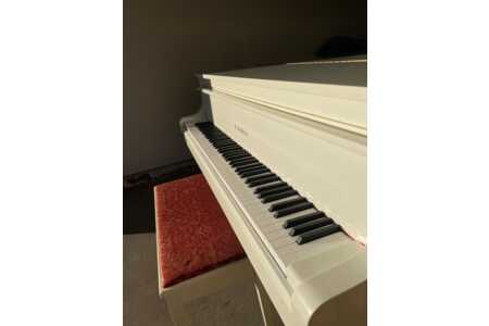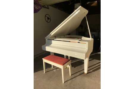 White Kawai baby grand piano GE-1